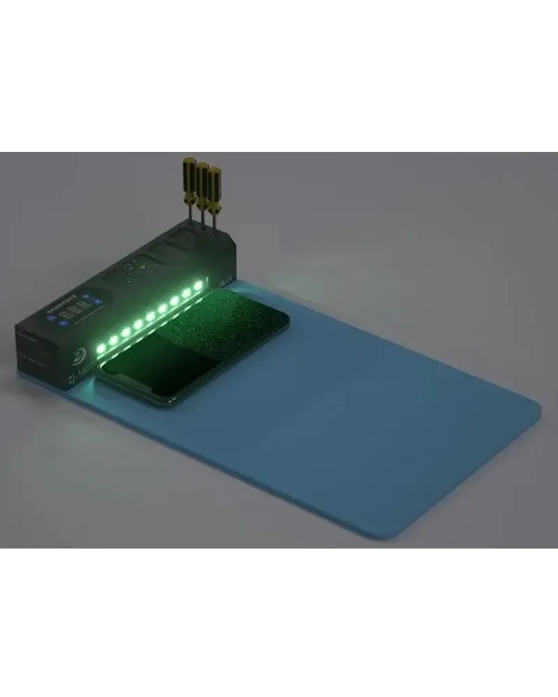 - Przestronna powierzchnia robocza umożliwia pracę z różnymi rozmiarami ekranów, co czyni urządzenie wszechstronnym narzędziem do obsługi szerokiej gamy sprzętu mobilnego.