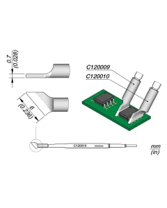 Grot ten został zaprojektowany do pracy z C120009, ze względu na kształt końcówki. Groty C120 są odpowiednie do lutowania i rozlutowywania elementów układu scalonego, skracając czas obsługi. Współpracują z mikropęsetą, która umożliwia ustawienie wkładów zgodnie z potrzebami użytkownika. Groty JBC Long Life oferują natychmiastowe nagrzewanie, doskonałe przenoszenie ciepła i dużą trwałość. Wytrzymują 5 razy dłużej niż inne marki dzięki najbardziej wydajnemu systemowi lutowania JBC oraz funkcjom uśpienia i hibernacji. Groty sprzedawane są pojedynczo.